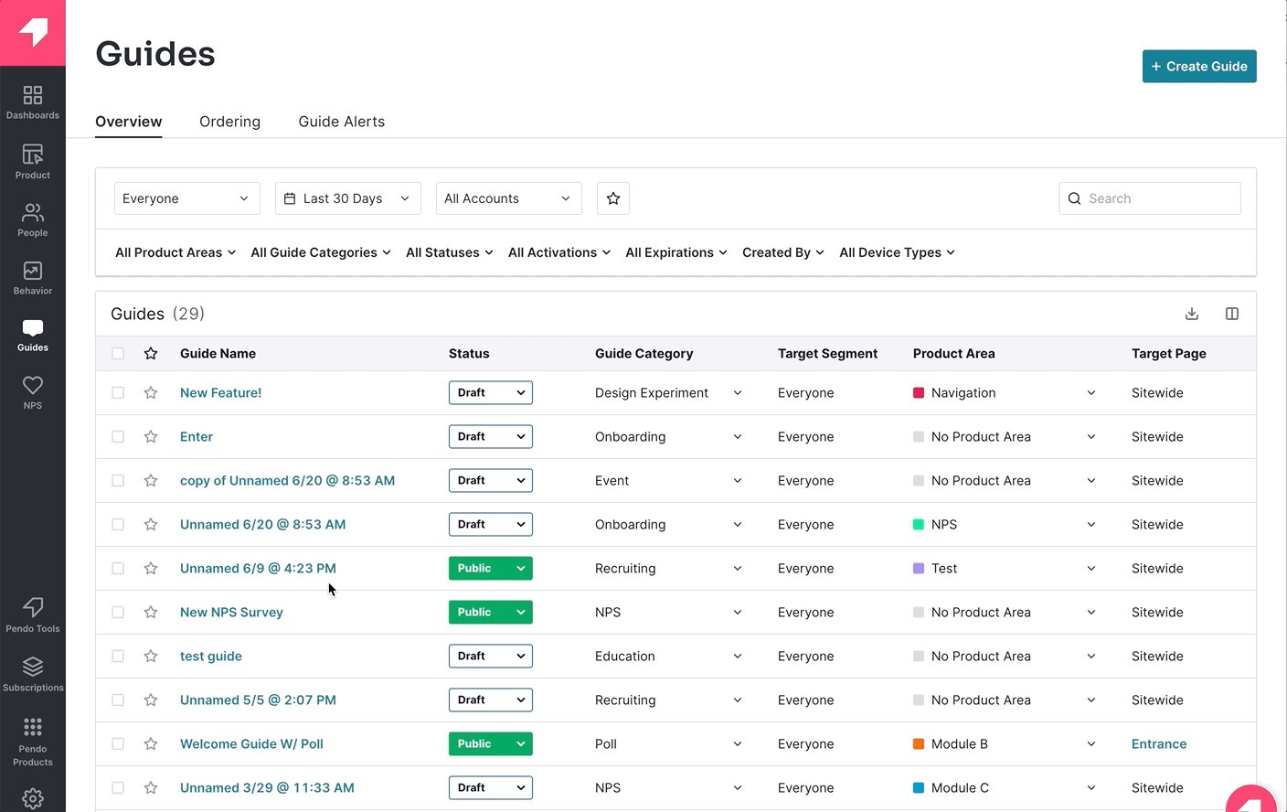 Fuente: Pendo, 2025: https://www.pendo.io/es-la/pendo-blog/introducing-guide-orchestration/📝 Pendo está diseñada para ayudar a los product managers a entender el comportamiento del usuario, recoger feedback y fomentar la adopción del producto. Sus funciones de análisis y mensajería in-app son especialmente útiles para mejorar la experiencia del usuario.