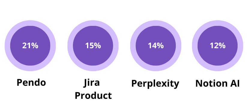 Con información de Mind The Product (https://www.mindtheproduct.com/poll-results-what-tools-are-product-managers-using-the-most/)Pendo.AI